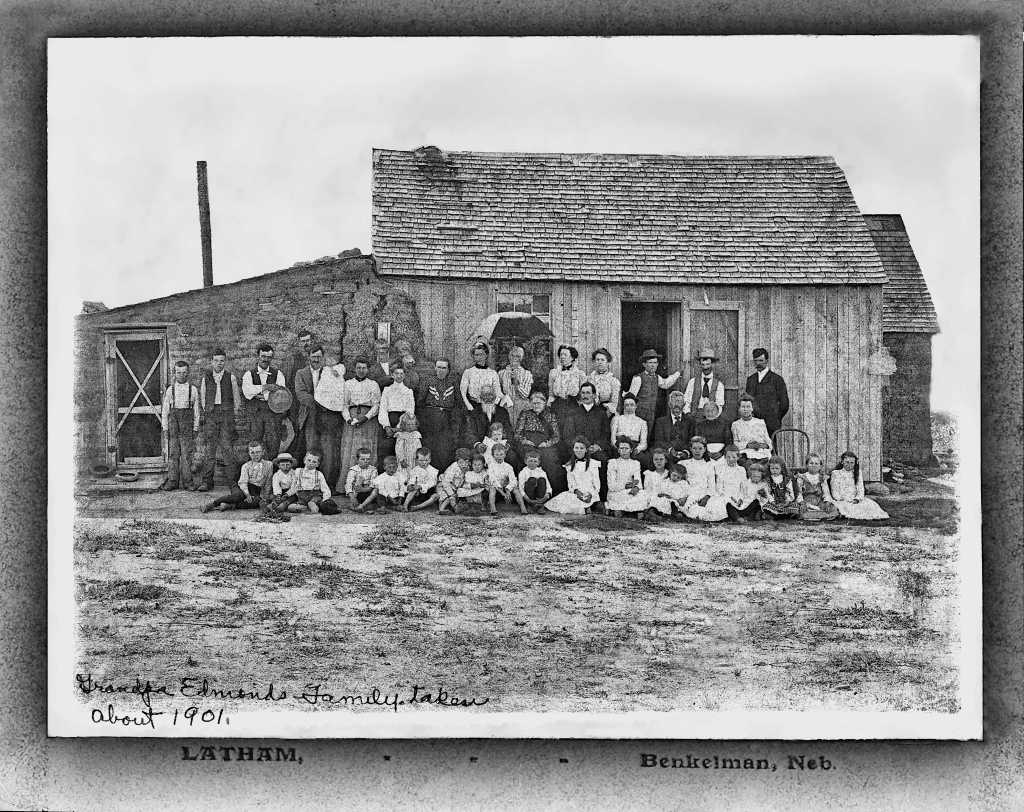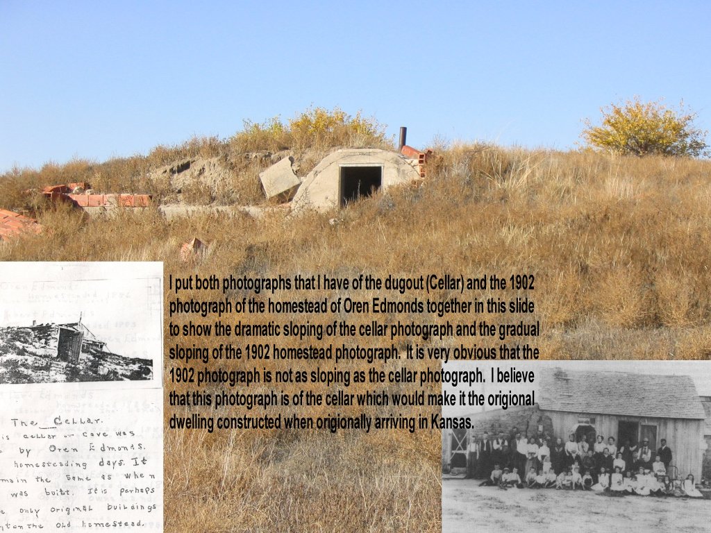 Less than a month after Robert and Oren started building on their claims Nancy Edmonds with Laura Belle and Johnnie (John Leander) came out west. On April 15th 1886 it is easy to imagine Oren and Robert and possibly Lemuel being at the depot waiting to see Nancy and the two youngest children get off the train and reunite the separated families. It is recorded that Nancy and children moved in with Robert until they could build the family home. There are two written sources which state that the family after arriving in Kansas lived in a dugout until the Soddy could be built. Specifically one source states that the dugout was located on Robert’s claim. Breaking of the land started on May 5, 1886. The planting of potatoes and corn had begun. During this time of planting, the building of homes, barn, and a chicken house was accomplished.